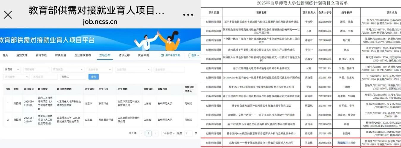 济宁市社科规划项目成功立项(左图)、“数智融创”辅导员工作室获校级立项(右图)