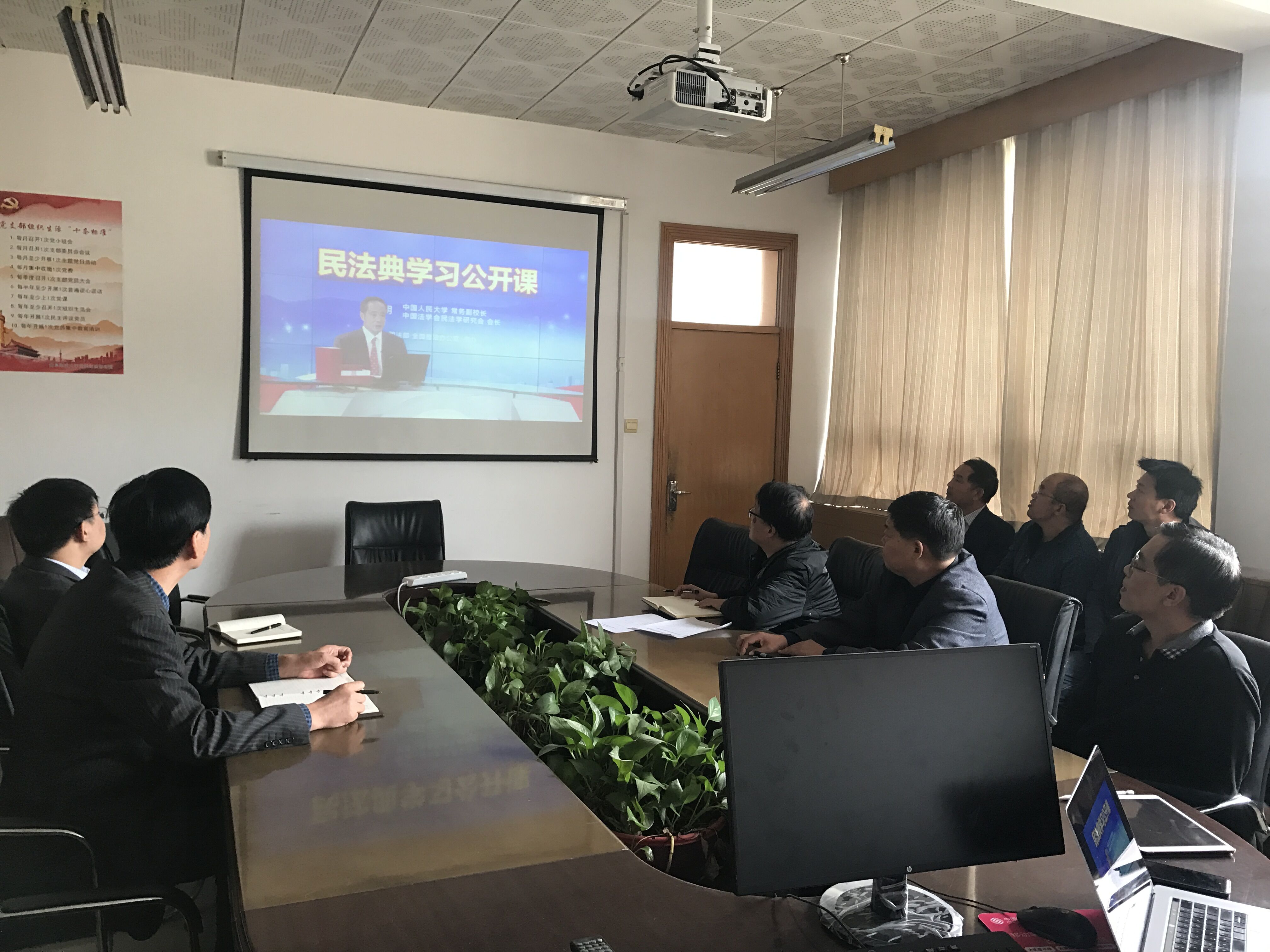 党委理论学习中心组在会议室集中学习观看《民法典》公开课。乐球直播