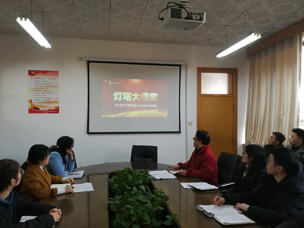 会议室共同观看灯塔大课堂第六次课程:《开启“中国之治”的宣言书——解读党的十九届四中全会决定》。