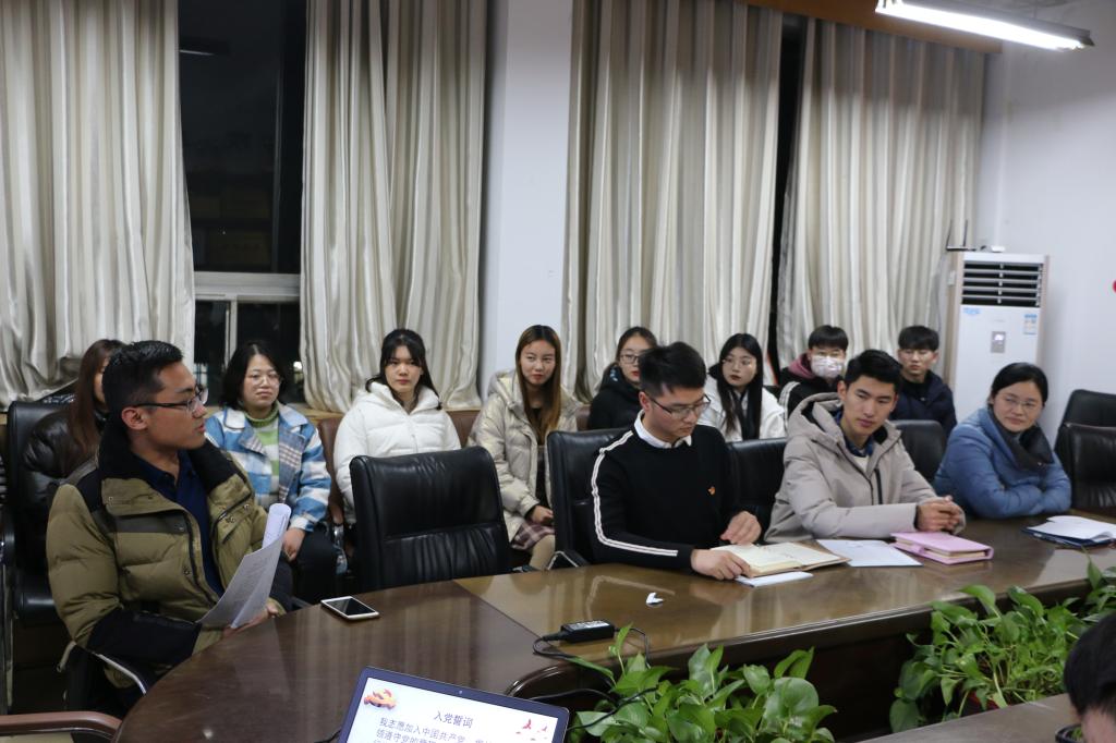 本科生党支部党员纳新大会在会议室401顺利举行。会议由本科生党支部书记田凯主持,团委书记范瑞红、辅导员洪亚玲、武玉龙、丁允念和全体学生党员参加。