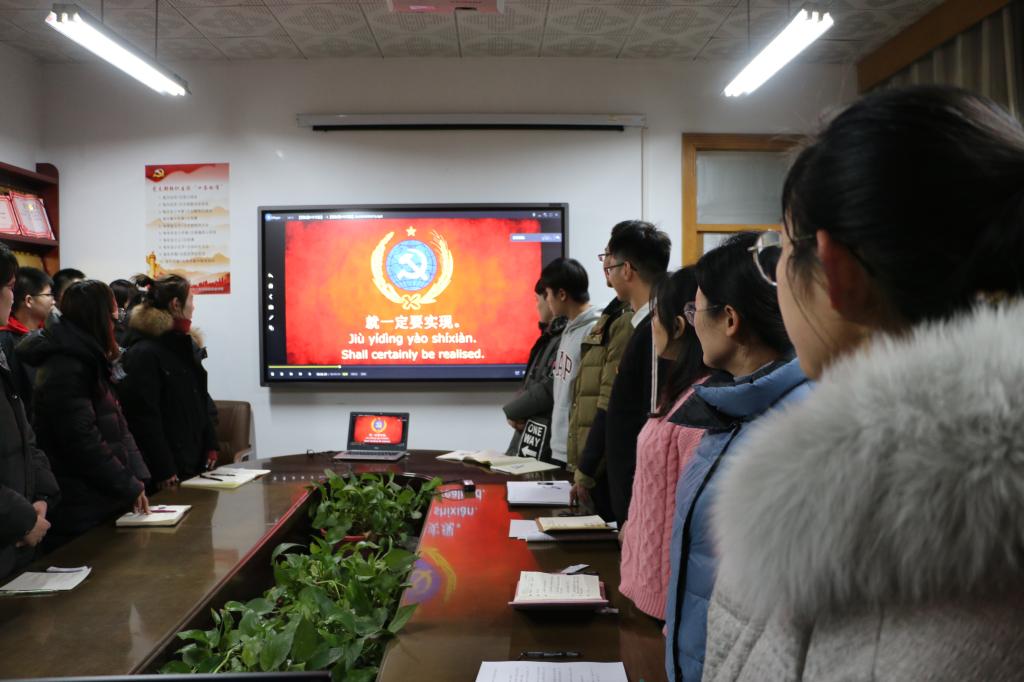 于410会议室召开党支部星级评定及年度考核评审会议,会议由本科生党支部书记田凯主持,团委书记范瑞红、辅导员洪亚玲、武玉龙、丁允念及全体党员参加。