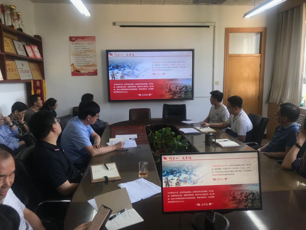 党委书记田云飞以“学党史、知党恩、跟党走”为线索,从毛主席激昂的长征诗篇引出主题,回首漫漫长征路,阐明长征胜利的伟大意义,长征胜利对我们的启示。田云飞讲述了红军在二万五千余里的征途中发生的突破敌四道防线、强渡乌江、占领遵义、四渡赤水、巧渡金沙江、爬雪山、过草地、陕北吴起会师、甘肃会宁会师等重要战役和事件。要求全体党员要从整个长征历程中汲取精神养分,学习长征精神,不忘初心,走好新时代的长征路。