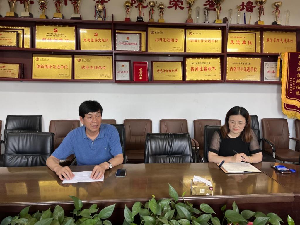 田云飞传达了学校会议精神,对2022年暑期留校学生管理工作进行了安排部署,强调全体师生要严格遵守学校安排,做到非必要不外出,严格落实离校审批、返校报备等手续;同时,强调暑期要加强实验室、机房、服务器等设备的管理,解决学生留校期间的日常需要,值班人员的手机要保持24小时畅通,以备处理各种突发事件,保证留校学生的安全和稳定。