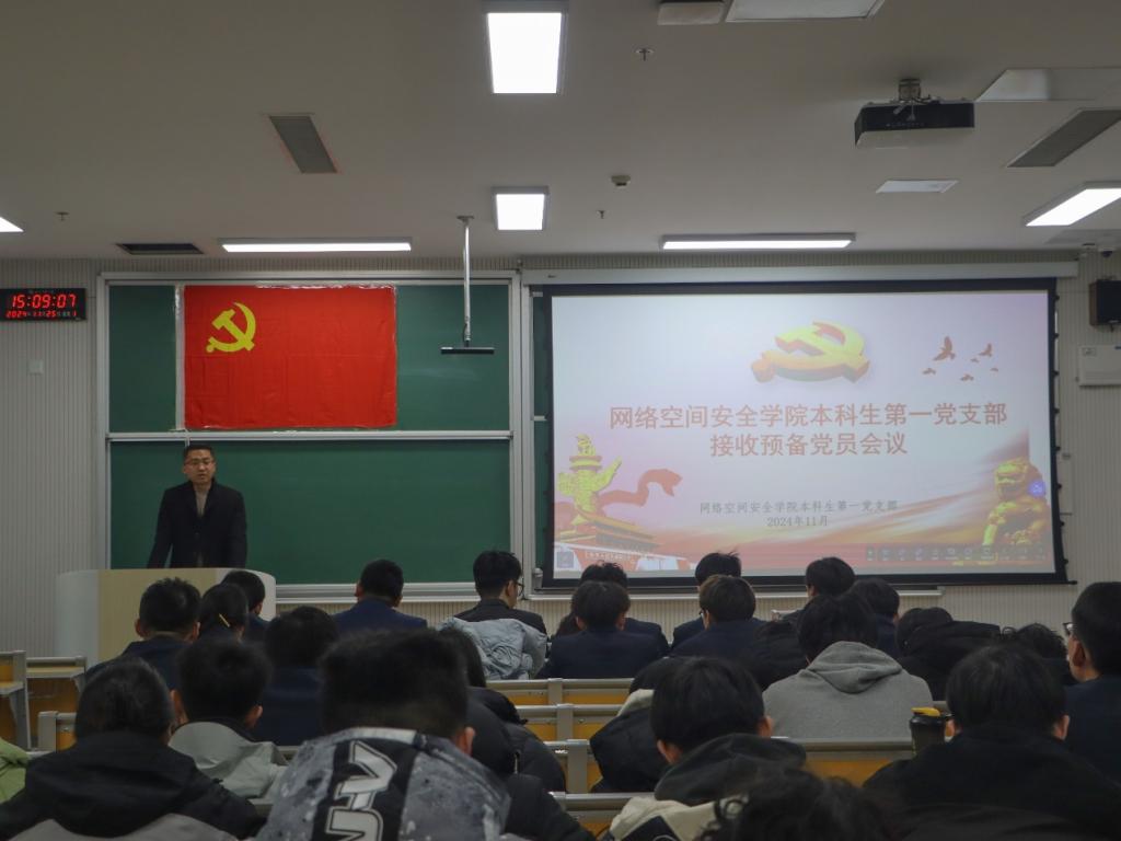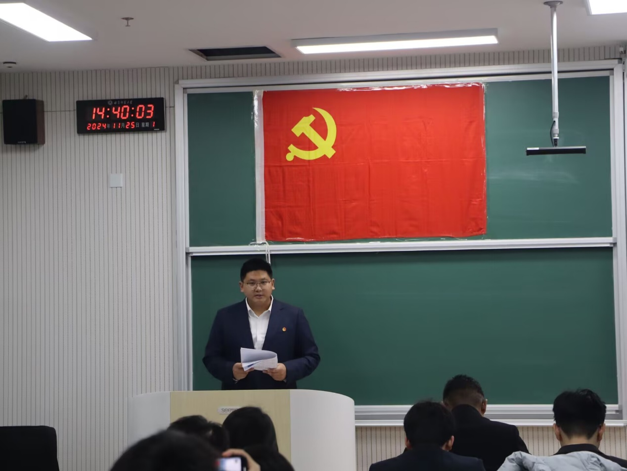 本科生第一党支部书记武玉龙主持会议,各党支部全体党员参加此次会议。
