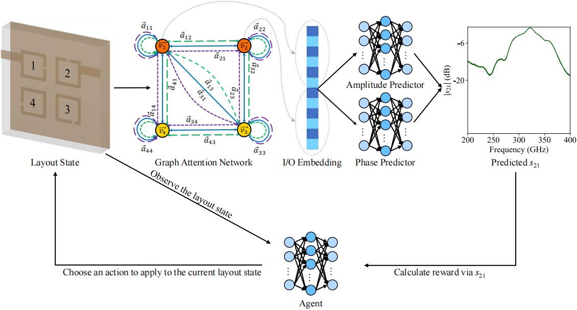 在高频滤波电路设计的过程中,工程师需要不断仿真调参迭代,耗时耗力,且对工程师经验依赖大。现有EDA工具(如HFSS)只能按一定步长枚举所有参数组合,然后对每种组合进行仿真,最后由工程师选择符合条件的设计。研究中,将高频滤波电路设计与优化问题看作是一个顺序决策任务,强化学习智能体通过改变不同谐振器的尺寸、开口位置和中心位置等几何参数来优化高频滤波电路的性能。所提出的方法不仅能够解决谐振器布局重叠约束问题,还减少了对电子工程师专业知识和设计经验的依赖,降低了设计过程的主观性。