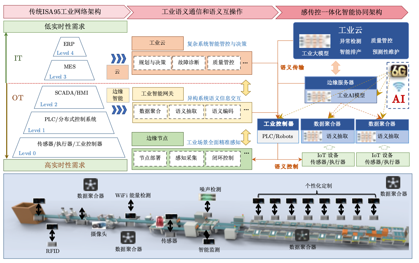 大规模工业物联网设备的高效互联互通与智能管控是我国制造业数字化、网络化、智能化转型升级和高质量发展的关键。由于通信、计算和网络资源受限,传输环境复杂,感知、传输、控制系统分离设计,传统工业网络面临感知传输效率低、异构系统互操作性差、难以高效协同的严峻挑战。首先,调研并总结了工业物联网发展的核心需求与瓶颈问题,其次,重点聚焦智能感传控融合的工业网络架构、工业物联网智能感知方法、认知智能驱动的工业语义通信以及边缘智能感知-高效传输-最优控制联合设计等关键技术问题,讨论了工业物联网智能感知-传输-控制融合的研究进展,最后总结了工业大模型与工业智能体、工业5.0、工业跨模态协同交互、工业数字孪生等具有重要意义和发展潜力的未来研究方向。