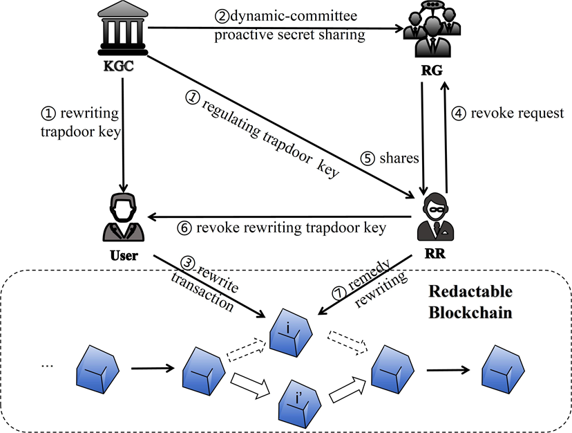 致力于突破现有区块链系统“只可追加、不可修改”的瓶颈,提出了两种兼具灵活性与安全性的可编辑区块链方案。其一构造了陷门秘钥可撤销变色龙哈希函数,支持支持可编辑区块链方案的自我管理和双重监管功能,能有效监管并惩罚恶意重写行为;其二设计基于链下信誉共识协议的公开可编辑区块链方案,利用门限签名方案,实现对编辑决策群组成员的动态更新,并提高节点对编辑投票的参与度。