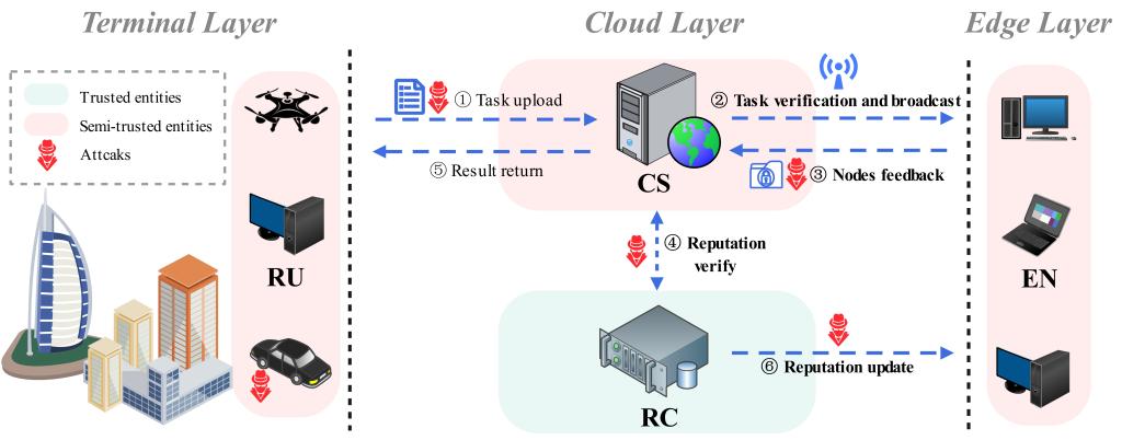 聚焦移动边缘计算中边缘节点的隐私与安全问题,提出基于布隆过滤器的匿名位置匹配验证算法,减少交互过程中的隐私泄露风险;设计匿名等式验证算法,保护声誉值隐私、识别并追溯篡改声誉值的恶意节点;构建融入时间因子的声誉管理算法,防止声誉关联攻击,保障声誉更新的可靠性与时效性,进而实现低开销下对节点身份、位置及声誉隐私的有效保护。