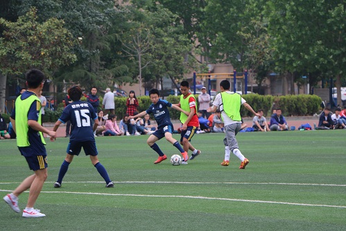 男子足球队队长房鹏抓住机会射门,率先进得一球,赢得了现场观众的喝彩,大大鼓舞了队员们的士气。随后,软件乐球直播