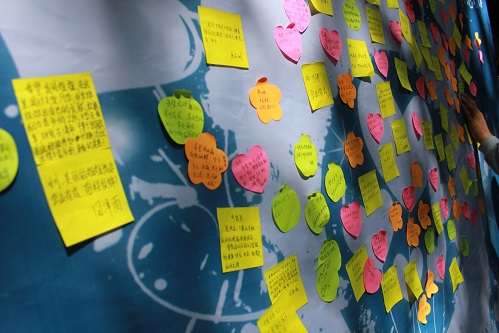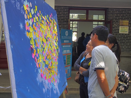 专门安排学生迎接新生家长,在西联五教室开设了父母休息区。在休息区,文艺部同学给父母送上爱心便利贴,邀请父母在上面亲自写下对自己孩子的期许或是展望。家长纷纷对此次活动表示赞许,在进学校大门的第一时间感觉到了乐球直播