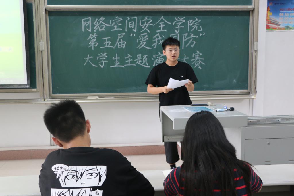 于综合楼301教室举办第五届 “爱我国防”大学生主题演讲比赛。由学生会副主席张子扬,部长杜文娣、高振坤担任评委,20级全体同学积极参与。