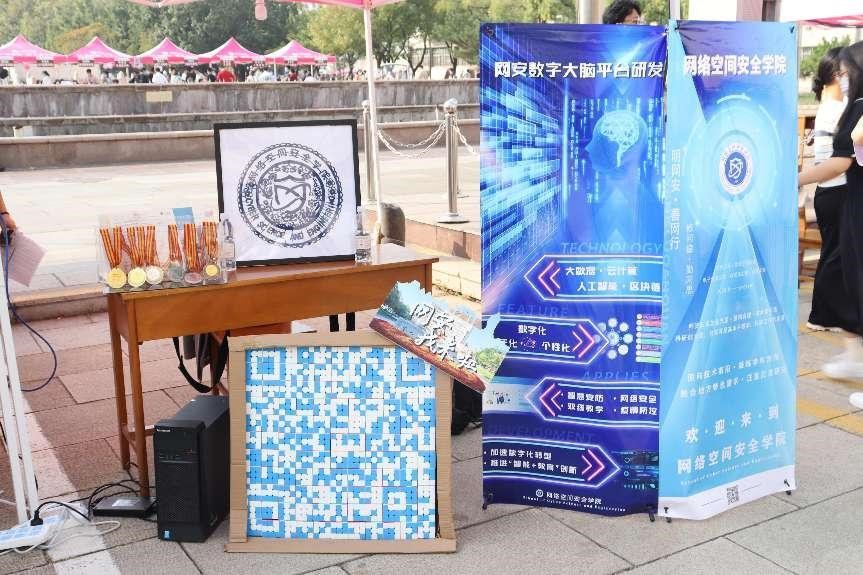 联合下设各个社团以独具特色方式来欢迎新生报到:展现软件类学科和电子类学科专业特点的由代码和嵌入的电路板制作的展板、由魔方社团通过魔方拼接制作而成的二维码、剪纸社团用精巧的双手剪刻出的院徽……各式各样的展品为迎新工作增光添彩,展现了乐球直播
