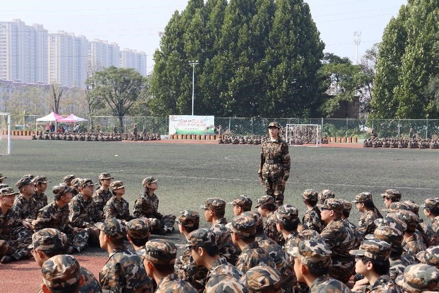 军训在充盈着力量的哨声中拉开帷幕,教官们亲自为新生整理军容和端正军姿,并对此提出了严格要求,随后细致地为同学们纠正跨立、敬礼、停止间转法等基本动作。同学们谨遵教官的指导,以严明的纪律刻苦训练。一支支整齐的方队,以饱满的精神,迈着矫健的步伐,喊着嘹亮的口号,尽显着蓬勃朝气。在军训的辛苦之余,也不乏乐趣。教官们在学生休息之余组织学生们进行自我介绍与才艺展示,连队之间的军训拉歌也在如火如荼地进行,嘹亮的军歌响彻训练场。在一块块训练场地上,不时传来阵阵欢声笑语与热烈不绝的掌声。