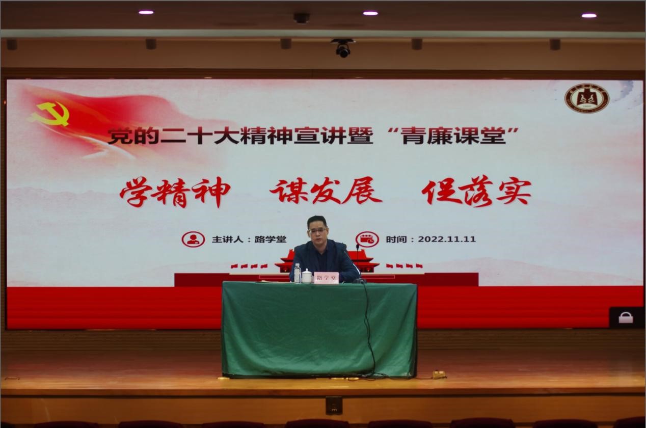院讯(通讯员:武玉龙 郑加强 摄影:崔城豪)11月11日上午,学校纪委在孔子会堂举办学习贯彻党的二十大精神宣讲报告会暨“青廉课堂”第二课。学校党委常委、纪委书记、省监委驻校监察专员路学堂作宣讲报告,纪委副书记苏斌主持报告会。乐球直播官网