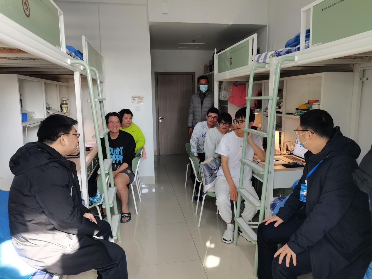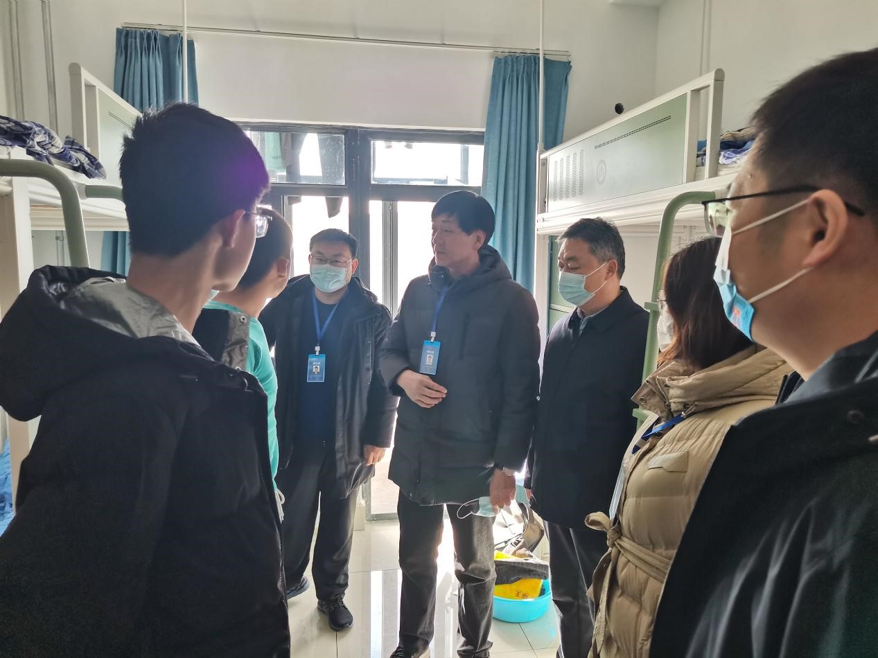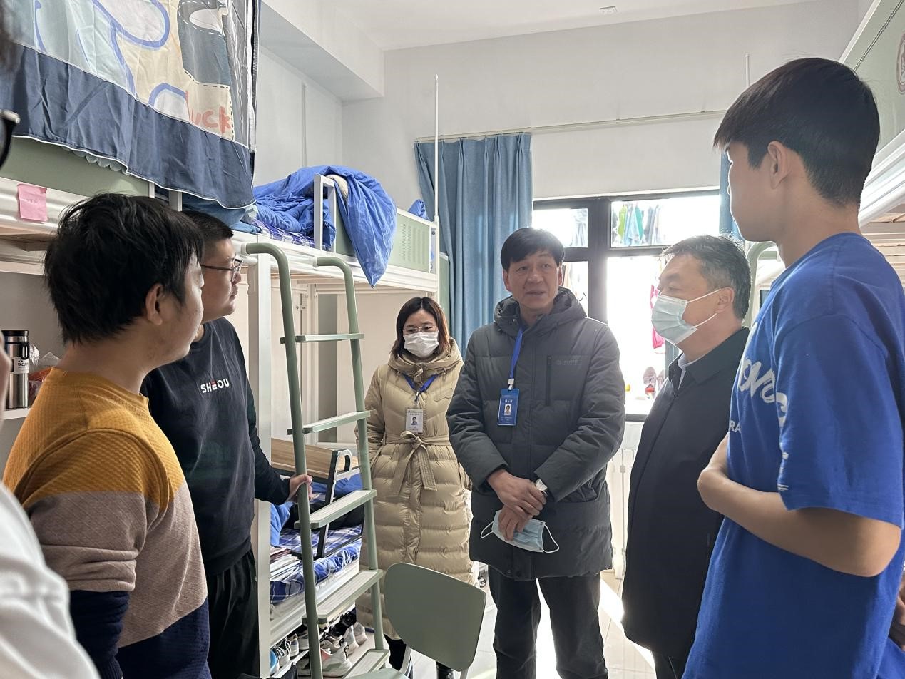 走访过程中,田云飞详细询问了学生公寓的日常管理及服务情况,实地查看了学生公寓的住宿环境,并走进部分学生宿舍与学生座谈。在宿舍中,王茂励与同学们进行了亲切交谈,了解了宿舍的暖气供给情况以及学生的学习生活情况,耐心听取学生的需求,细心叮嘱同学们要保持宿舍环境整洁,定期通风,预防感冒,外出做好个人防护,注意宿舍用电安全等。范瑞红表示,学校始终把同学们的健康放在首位,希望同学们理解、支持、配合学校的管理制度,以积极向上的态度面对当前的学习和生活,用实际行动体现曲师学子的自律自觉和责任担当。