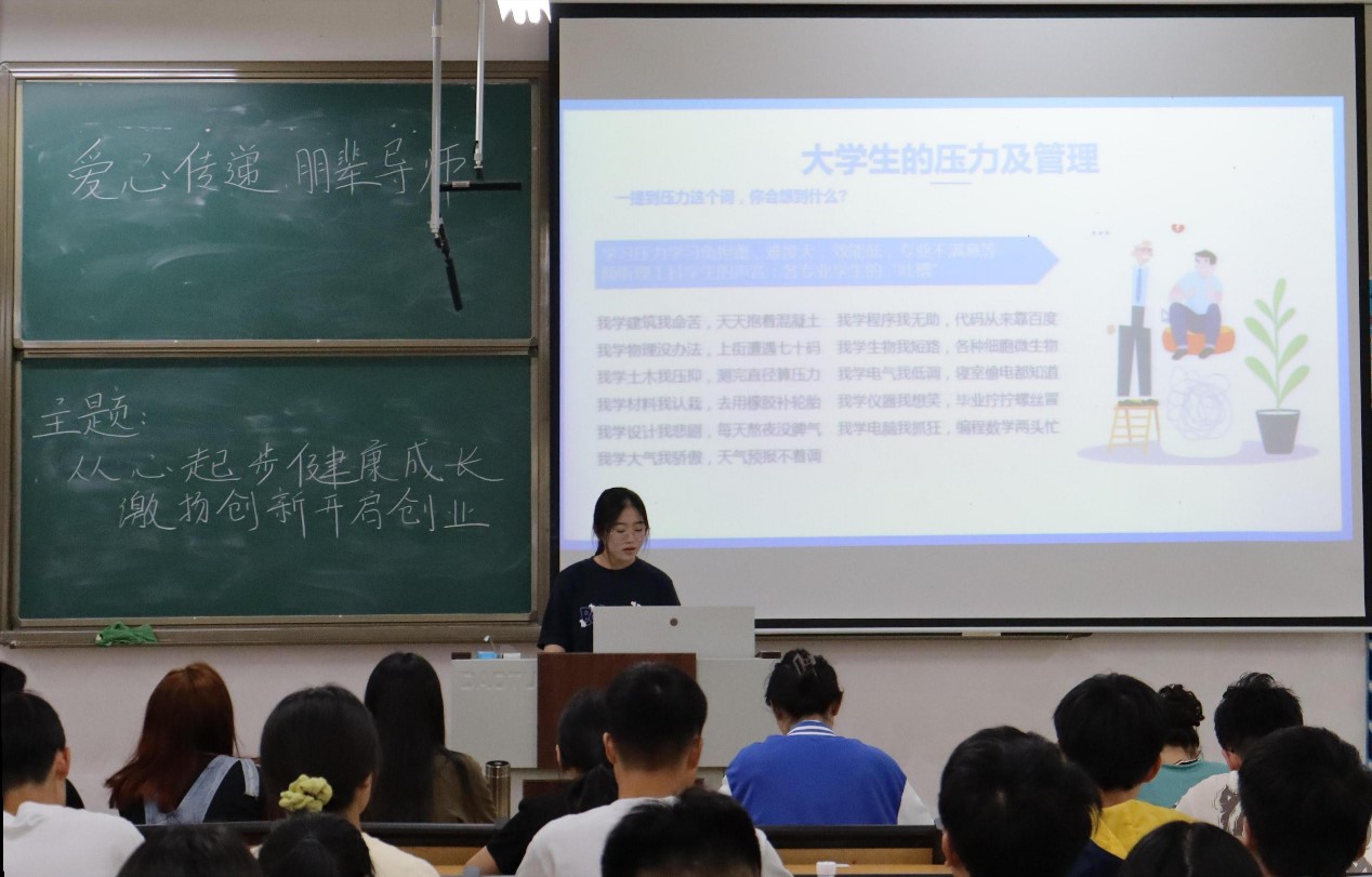 活动伊始,王格针对大学生心理健康教育进行讲解,通过案例分析与情节互动,带领大家了解心理健康方面的常见问题,教导大家如何进行情绪与压力的管理,让大家更好地掌握自己的心理状况。随后,吕廷帅从具体事例出发,进行知识小问答,对大学生创新创业进行授课,带领同学们分析就业形势,强调大学生应保持良好的“素质”,勇于寻找与创造机会。活动过程中,参赛者认真聆听,积极与朋辈导师展开互动交流,并于会后上交课程感悟。后期权益部成员依据参赛者的课前准备、课堂表现、课堂作业的完成情况进行评分,评选出校级一等奖2名、二等奖3名、三等奖5名。