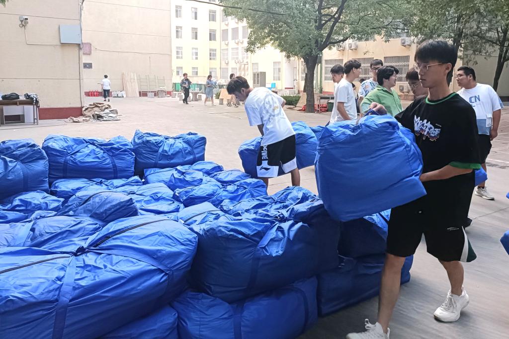 新生开学在即,学校为2023新生提前准备好了被褥、水壶、军训服装等生活物品,乐球直播