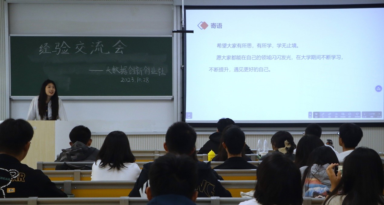 大数据创新创业社邀请保研至北京邮电大学的20级优秀保研学生孙冠楠进行保研经验分享,21级、22级、23级部分学生参会。