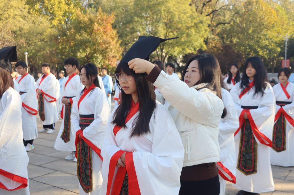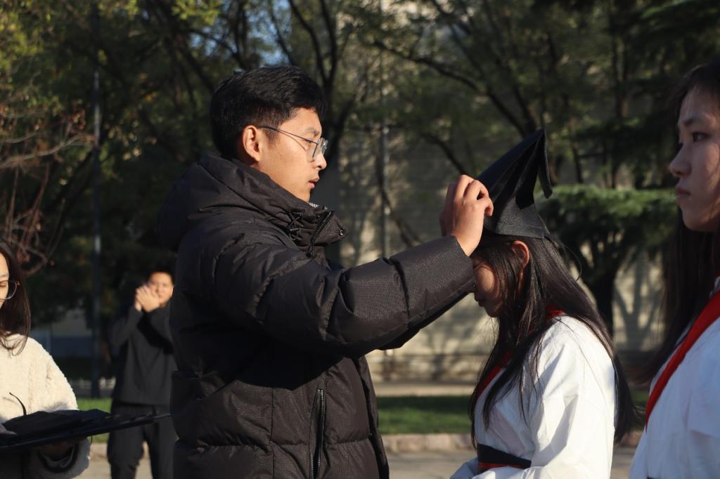 活动伊始,参礼学子面朝至圣先师行孔子之像行三揖礼和三鞠躬礼,展示中国传统文化的礼仪风采。赵兴卯、洪亚玲逐一为学子加冠及笄,并寄予期望与嘱托。随后,在学生代表荆锦硕的带领下,全体同学进行庄严宣誓,立志成为有理想、有道德、有文化、有纪律的社会主义公民,将秉承时代精神,不忘初心,砥砺前行。
