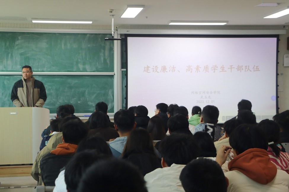 在格物楼B221开展“建设廉洁、高素质学生干部队伍“主题党日活动,学生党员、学生干部、学生入党积极分子参加本次主题党日活动,武玉龙老师主持。