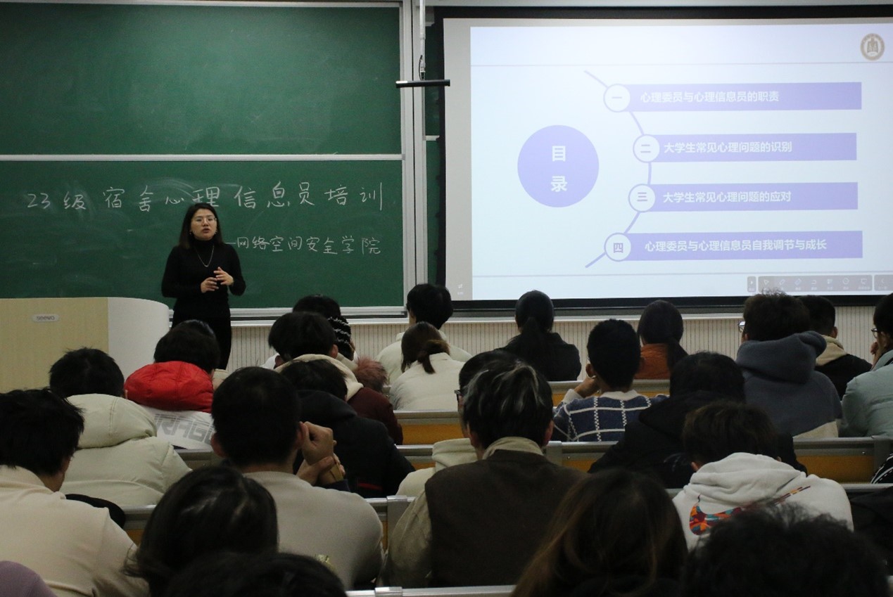 于格物楼B106教室举办了2023级宿舍心理信息员培训活动。本次培训由辅导员相青老师主讲,乐球直播