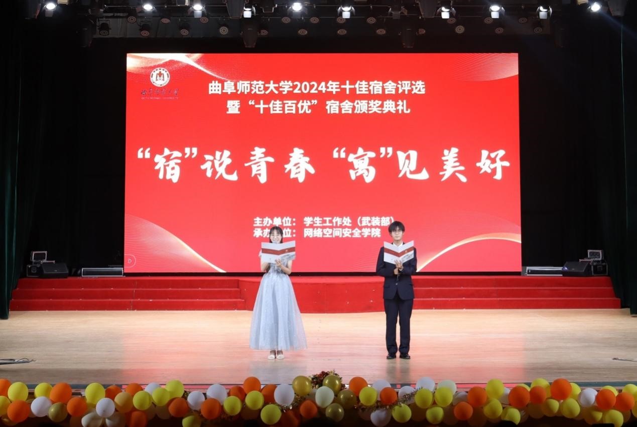院讯(通讯员:相青 杨欣悦 摄影:王一菲)为构建积极向上、文明互助的宿舍新风气,共创干净整洁、舒适温馨的宿舍新环境,彰显曲园学子的精神风貌,6月3日晚,曲阜师范大学曲阜校区2024年“‘宿’说青春,‘寓见美好’”十佳宿舍评选暨“十佳百优”宿舍颁奖典礼在大学生活动中心隆重举行。学校党委常委、副校长李兆祥,学校学生工作处处长姜美颖,校团委书记孔轶众出席本次活动。