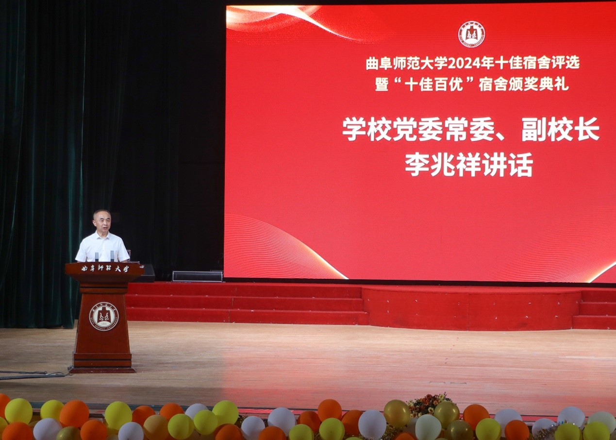 李兆祥在讲话中肯定了参选宿舍成员在宿舍文化建设中付出的努力和取得的成果。他表示,宿舍不仅是我们休息的空间,也是大家学习、生活、成长的“家”,我们不仅要有明亮的眼睛去发现“家”的美丽所在,更要有充满着爱的心来呵护“家”的温馨。本次开展的十佳宿舍评比活动全方位地展现出了曲园学子积极向上的宿舍文化和互帮互助、“小家大爱”的宿舍温馨氛围;在展演节目中充分体现出我校思想道德建设、学生建设、宿舍卫生、环境特色、文化建设方面的成效。