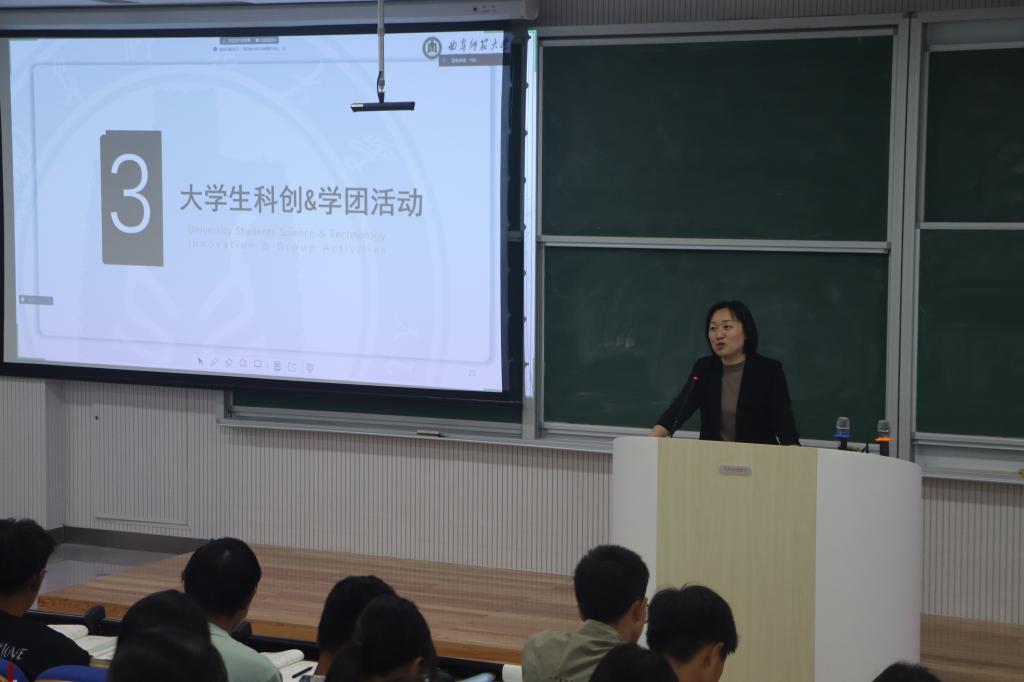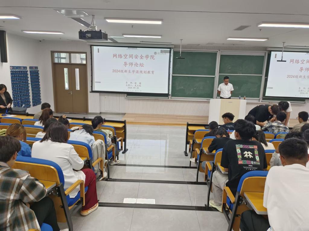 电子信息系主任、研究生导师徐娟担任主讲人,辅导员武玉龙主持本次导师论坛,2024级全体本科新生参加。