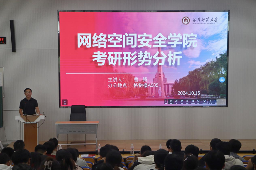 近年来的考研情况及相关数据。他指出,随着保研名额的增加和推免政策的优化,曲阜师范大学学生在众多高校中获得了较高的认可度。他还鼓励大家保持信心与毅力,勇敢追求理想,积极应对备考挑战。与会学生纷纷表示,自己将以积极的态度全力备考,提升专业素养,努力实现自己的考研目标。