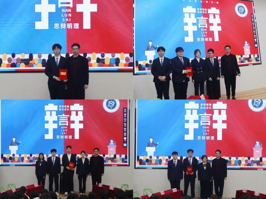 为了提升赛事的趣味性,主办方特意设计了多个娱乐环节。在“现场互动”环节,随机抽取观众进行即兴发言,让观众亲身体验辩论的魅力。而表演赛环节,辩手们凭借出色的辩论技巧与默契配合,为观众带来了一场视听盛宴。此外,赛事通过融入观众投票环节,增强了比赛的公正性,评分则综合考量辩手们在逻辑性、表达力和团队协作等方面的表现。经过激烈角逐,最终思辨新青年队凭借出色发挥斩获冠军,3+1队获得亚军,千辩万化队荣获季军,刘皓阳同学凭借在多场比赛中的精彩表现当选最佳辩手。最后,丁允念为获胜队伍颁奖。