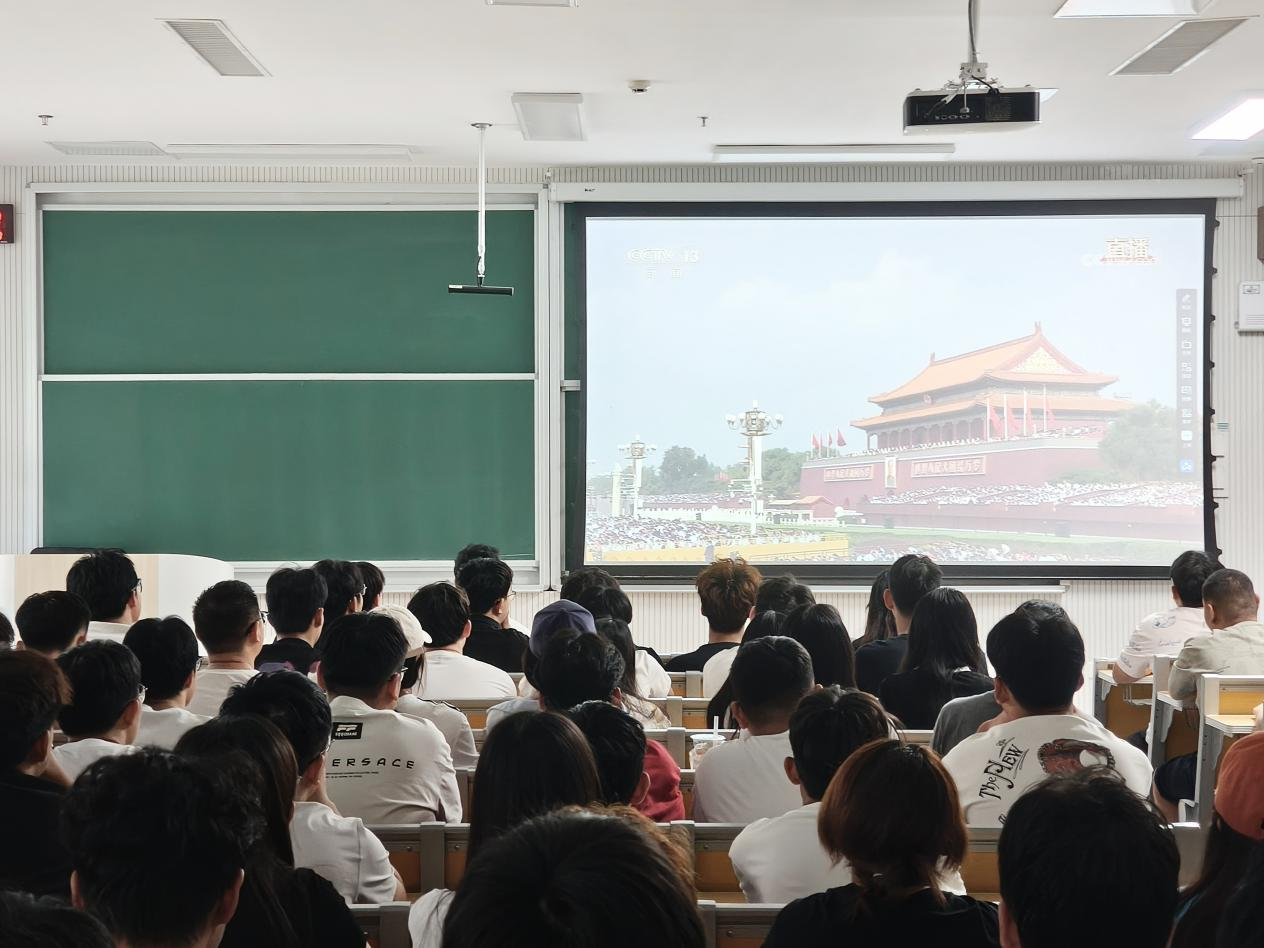 乐球直播官网 院讯(通讯员:相青 刘逸坤为铭记历史、缅怀先烈,弘扬伟大抗战精神,9月3日8:00,乐球直播官网 组织师生分别于格物楼A504会议室、B105教室集体观看了纪念中国人民抗日战争暨世界反法西斯战争胜利80周年阅兵。乐球直播 党委书记田云飞、院长王茂励、党委副书记范瑞红、副院长马旭、团委书记丁允念、乐球直播 全体辅导员以及24级同学参与。