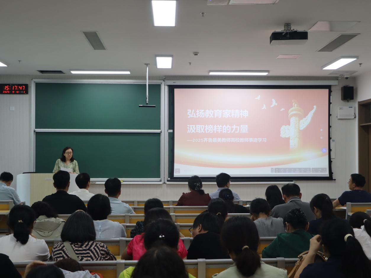 会议伊始,董占华引领与会教师们学习了2025年“齐鲁最美教师”的事迹,从坚守教育初心、关爱学生成长、勇于创新实践等多个维度,深入阐释了教育家精神的丰富内涵与时代价值,强调了新时代弘扬教育家精神的重要性。她指出,大力弘扬教育家精神是响应国家战略需求、培养德智体美劳全面发展的社会主义建设者和接班人的关键,为教育工作锚定了方向、明晰了目标。最后,田云飞进行了总结发言。他强调,学习和弘扬教育家精神是每位教师的责任与使命,同时鼓励与会教师们以这些榜样为楷模,将教育家精神内化于心、外化于行,融入日常教学、科研与育人工作的每一个环节,凝心聚力、携手共进,共同为乐球直播 的建设和发展贡献力量。