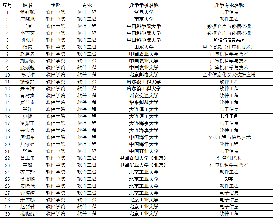 大学录取,杨策被山东大学录取,赵腾云、刘宗敏、张颖超3人被中国农业大学录取,冯巧稚被北京邮电大学录取,徐静如、朱玉洁2人被哈尔滨工业大学录取等等。