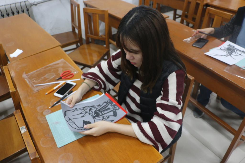 活动伊始,剪纸协会社长常洁将精美的剪纸作品以PPT的形式一一展示,一张张用剪刀加工出的活灵活现的艺术品涌动着生命的气息,传递着中国梦的精髓。随后,她向同学们详细讲解了剪纸的流程及技巧,灵巧的手指在红纸上上演了一场绝美的“纸上舞蹈”,演绎着中华民族灿烂辉煌的传统文化。同学们跃跃欲试,在掌握了“折、画、剪”的小窍门之后,便开始了艺术创作。时而认真思考,时而上下摆动,智慧在指间流转,艺术之心在纸端跳跃。左一剪,右一剪,不一会儿的功夫,平凡的纸张在指尖焕发出了别样的风采。一个个形态各异的图案活灵活现。