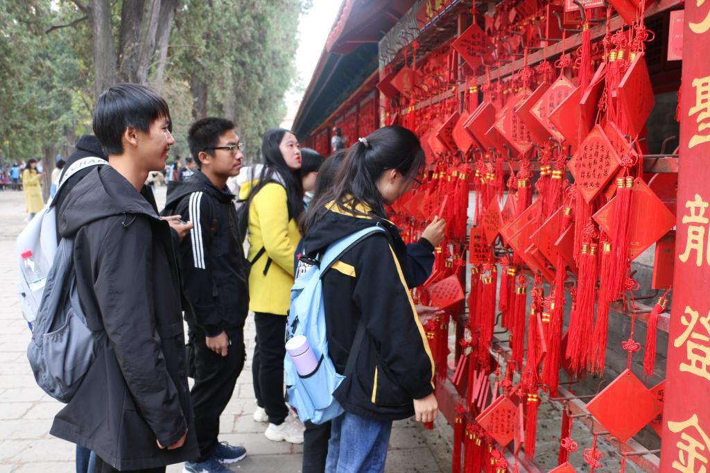 各班于上午七点在墨子像集合完毕,随后四百余人的队伍怀着对圣人的敬仰之情,整齐划一、井然有序的前往景区。上午八时同学们来到“万仞宫墙”下,城墙上青砖灰瓦,尽显古朴优雅,城墙外潺潺流水,诉说着千百年的故事。清晨的开城仪式浩浩荡荡,尽显隆重与大气。在万仞宫墙前合影留念后,各班同学分组跟随导游参观学习。走进孔庙,同学们又被一座座高大的石碑吸引,洪武、永乐两个碑亭内矗立着明朝的两座石碑距今近六百年的历史,听着导游的讲解,解读着碑上的篆字,同学们惊叹着孔圣人的功绩。穿行在保留几千年文化底蕴的古建筑群中,同学们真正的抒发了一番思古之幽情,品味了一场文化盛宴。