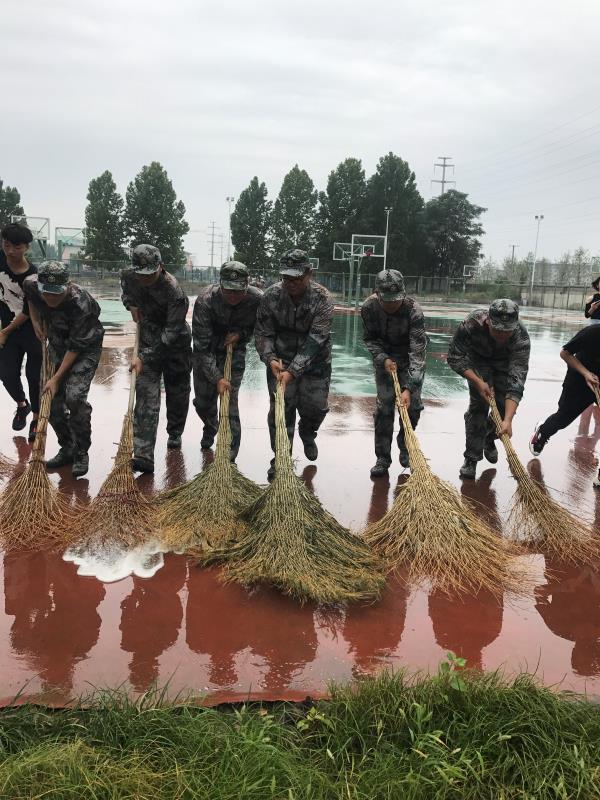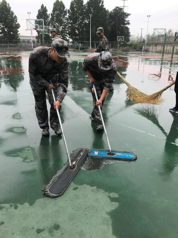 9月12日早上,经历了一夜风雨的洗礼,西操场雨水堆积,显得格外狼藉。同学们不辞劳苦,拿起工具,一同打扫场地。“团结就是力量”,军训教给同学们的集体责任感,在此时被同学们用实际行动体现的淋漓尽致。将积水清扫干净后,同学们不畏环境潮湿,开始了刻苦的训练。他们每个人都严守军纪,坚持不懈,积极热情地参与到每个项目的训练中。操场上整齐的队列,标准的动作,响亮的口号,都表现了新生们的坚忍不拔,展示了软件学子良好的精神风貌。