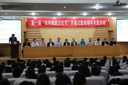 主办的曲阜师范大学第一届软件创新文化节启动仪式暨首场学术报告会于2016年5月12日在孔子会堂成功举行。开幕式现场,嘉宾云集,氛围热烈。曲阜师范大学副校长王继锁,中国计算机学会秘书长、常务理事、中科院计算所杜子德研究员,中科智城创始人CEO、中科院计算所陈援非副研究员,教务处处长张良才,招生就业处处长郭庆兵,实验室与设备管理处处长杨革,校团委书记屈跃宽,青岛英谷教育科技股份有限公司董事长韩敬海,山东亿维系统集成股份有限公司总经理梁建雷,惠普济宁人才及产业基地产学研中心经理张作浩,山东普照教育科技有限公司总经理李帅,软件乐球直播