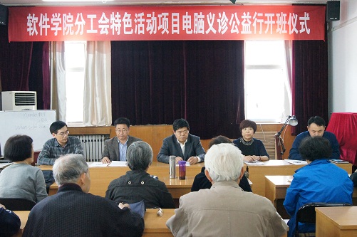 分工会特色活动项目电脑义诊公益行开班仪式在老干部楼举行。校工会副主席张月萍、离退休工作处党总书记冀贞友、软件乐球直播