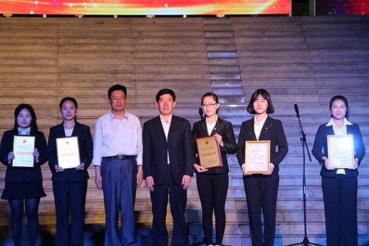 团总支书记杨正运、团总支副书记卢锡蓉分别上台领奖。