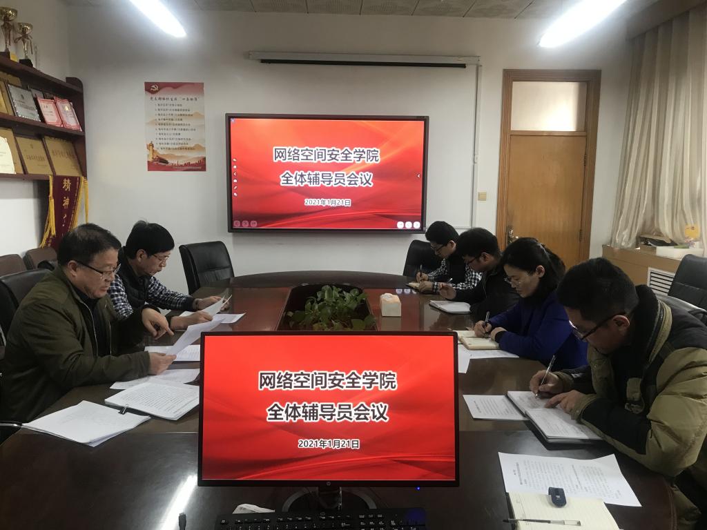 会议室召开全体辅导员会议。出席会议的有党委书记田云飞同志,党委副书记田凯同志,本科生各年级辅导员和研究生辅导员。本次会议总结了2020年度的学团工作,同时部署了2021年度的学生工作安排。