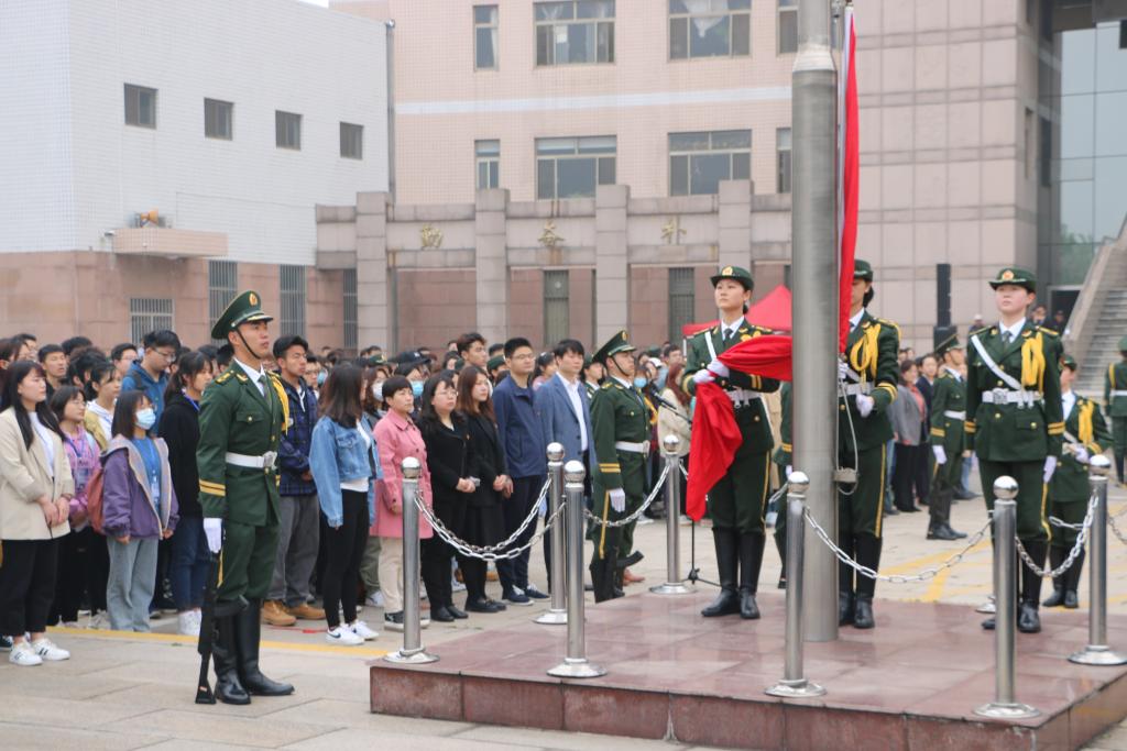 迎着晨曦的微光,英姿飒爽的国旗护卫队队员护送五星红旗来到国旗台下,全场一片肃静。在《义勇军进行曲》的播放下,五星红旗冉冉升起,在空中飘扬,全体师生唱国歌,行注目礼。随后,学校举行学生入团仪式,团员代表对自己的基本情况和未来规划进行汇报。精彩的演讲过后,文艺汇演正式开始,爱国歌曲、诗歌朗诵不绝于耳,使活动气氛达到高潮,全体人员深受触动。