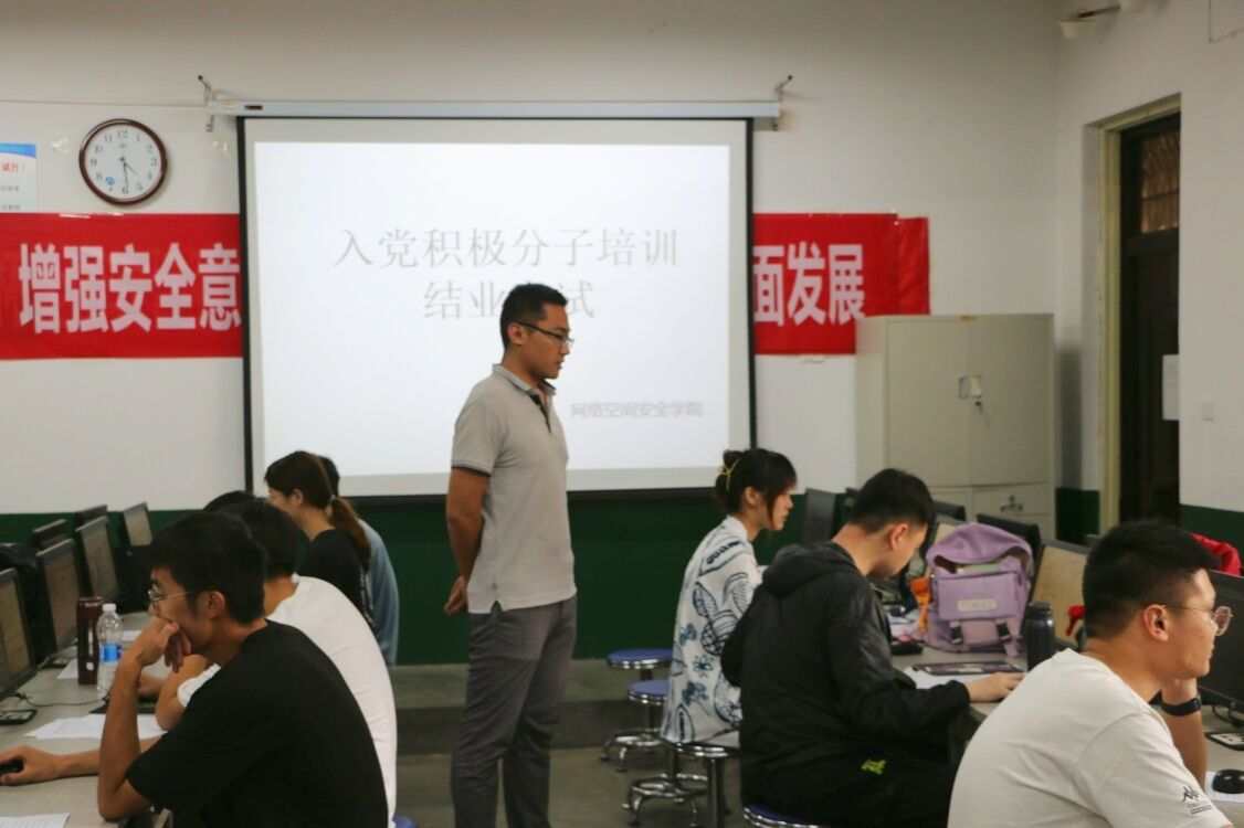 于软件测试实验室201、301室开展入党积极分子培训结业考试。此次考试,由辅导员武玉龙担任监考老师,维持考试纪律并巡视监考。
