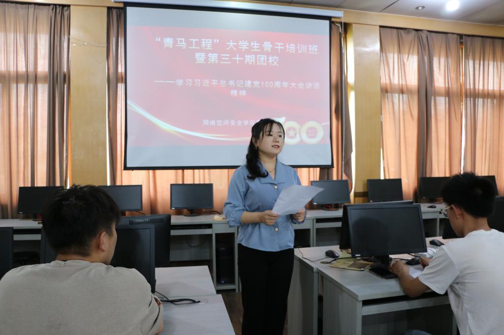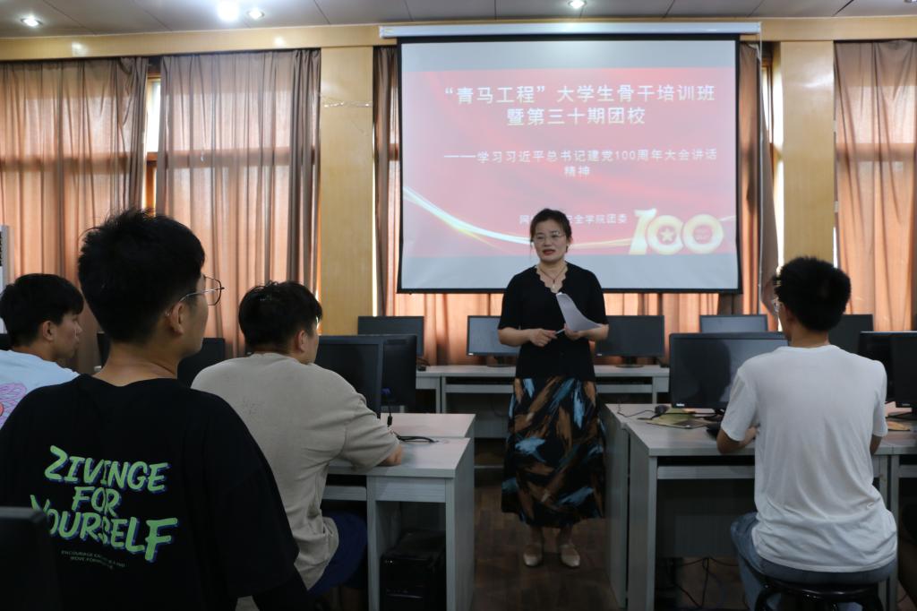 团委开展“青马工程”大学生骨干暨第三十期团校活动。青马学员一起回看了建党100周年直播盛况,学习习近平总书记讲话精神。青春向党,共赴远方。