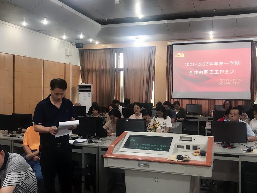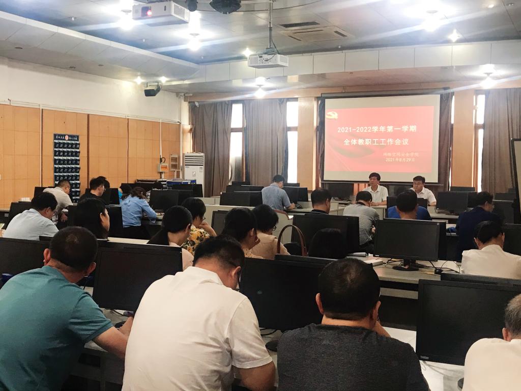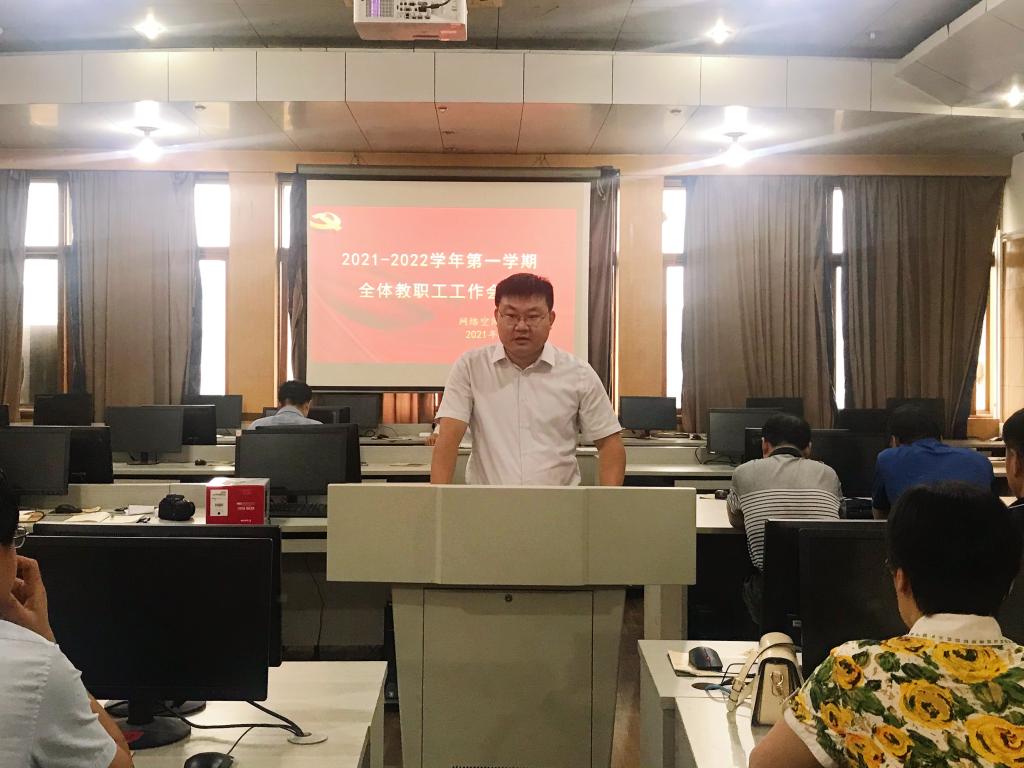 在502教室召开2021-2022学年第一学期全体教职工工作会议。乐球直播