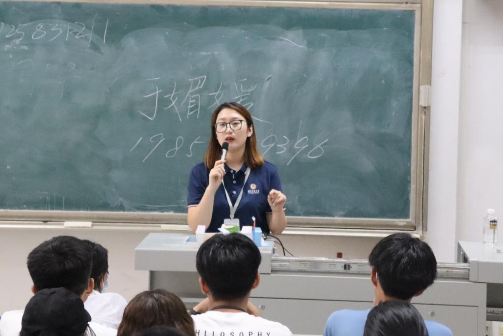 于综合楼101、106教室同时召开新生见面会,辅导员丁允念、李扬、于媚媛与新生初次见面,畅聊大学新生活。