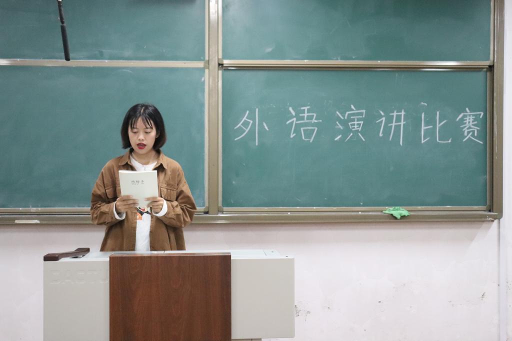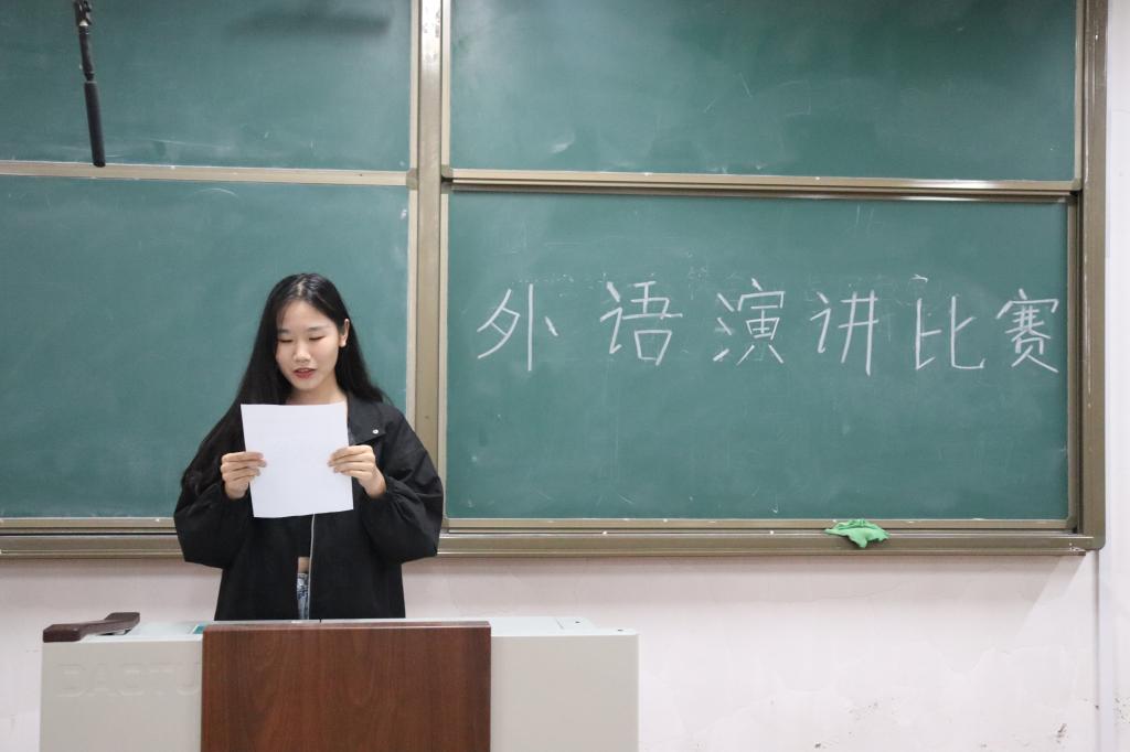 在西联二教室举办外语演讲比赛。学习部张欣瑜、姚慧思、李静雯、刘胜杰担任评委。