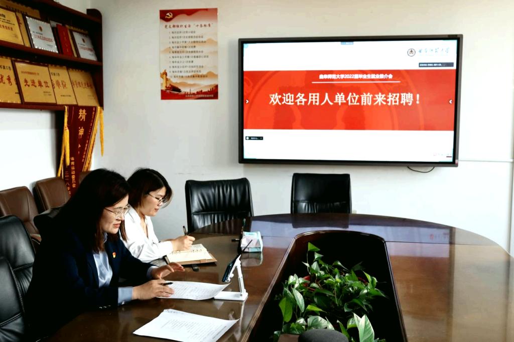2022届毕业生就业推介会暨“书记院长访十企”线上招聘会于410会议室举办,特邀烟台东方威思顿电气有限公司等省内十余家知名企业参会。乐球直播官网