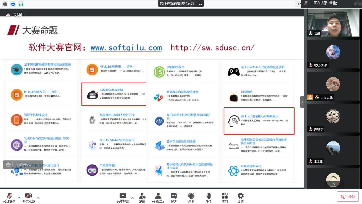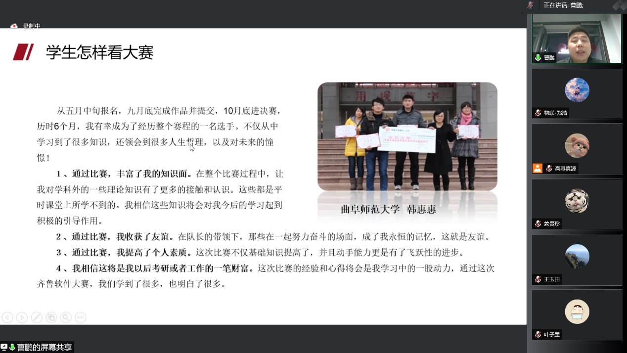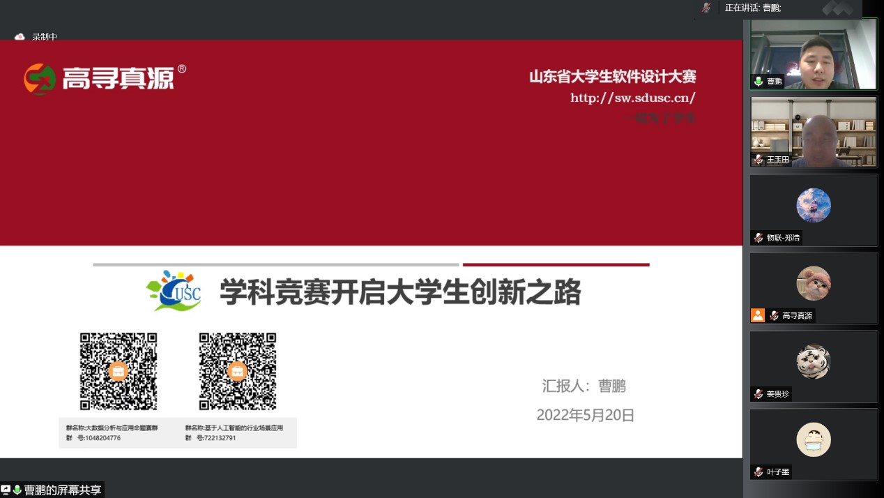 “第二十届山东省大学生软件设计大赛”命题宣讲活动于线上举行。高寻真源(山东)教育科技有限公司曹鹏、乐球直播官网