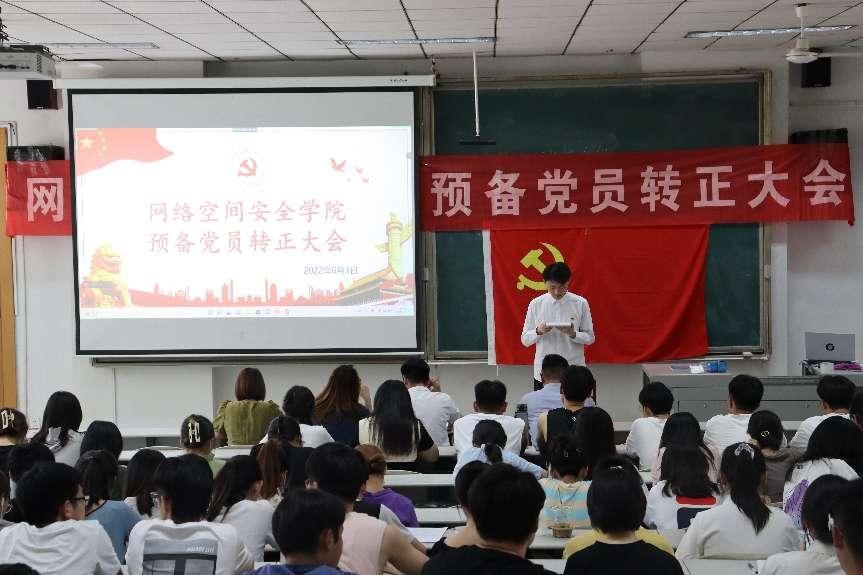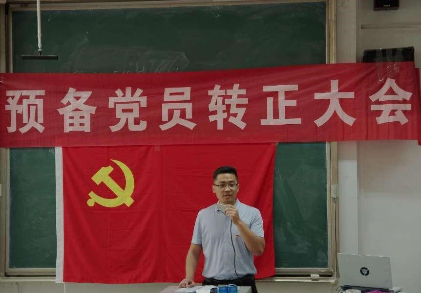本科生党支部于综合楼101召开预备党员转正大会。会议由本科生党支部书记武玉龙主持,辅导员丁允念、相青、于媚媛及本科生党支部全体党员参加会议。