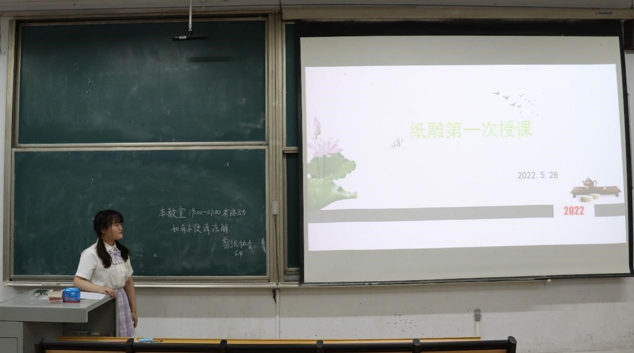 剪纸协会在综合楼105教室举办剪纸教学活动。此次教学活动由剪纸协会教学部部长赵西宏担任主讲,剪纸协会部分成员参与。